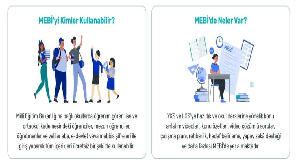 Millî Eğitim Bakanlığına bağlı okullarda öğrenim gören lise ve ortaokul kademesindeki öğrenciler, mezun öğrenciler, öğretmenler ve veliler eba, e-devlet veya mebbis şifreleri ile giriş yaparak tüm içerikleri ücretsiz bir şekilde kullanabilir.